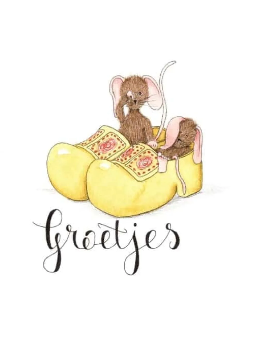 Anillustration Ansichtkaart Slapende muisjes in klompen