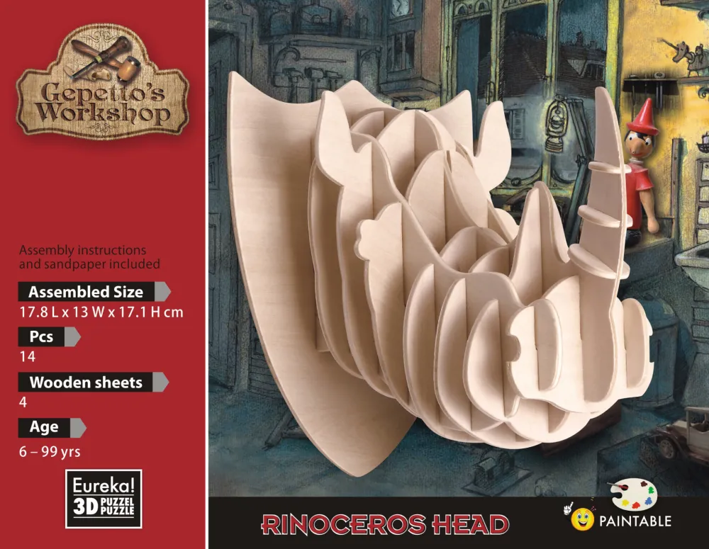 Eureka Creatief^3D Hout Model Gepetto´s Rinoceros Head