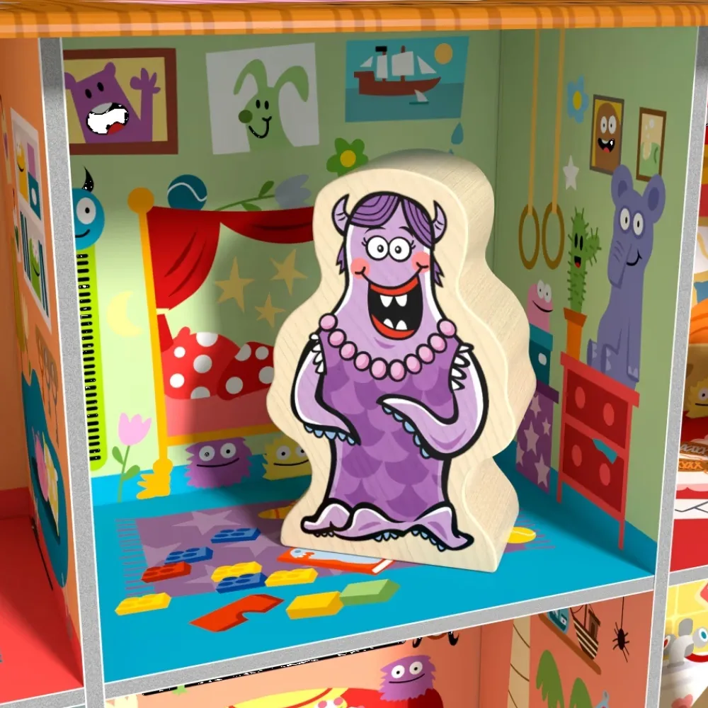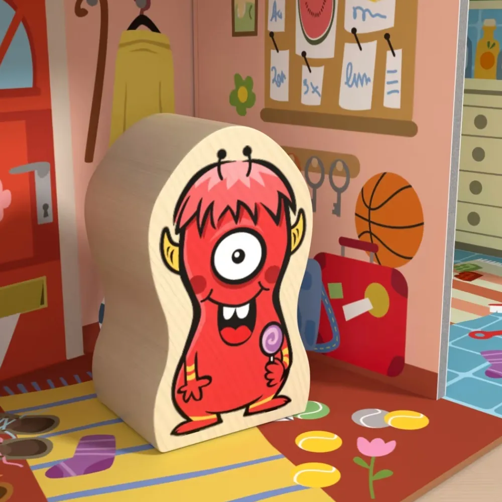 De slimme Wanda houdt ervan om verstoppertje te spelen. Het hele gezin moet constant op zoek naar het rode monstertje. De kinderen helpen de familie Monster om Wanda te vinden in de kleurrijke drukte van het huis.