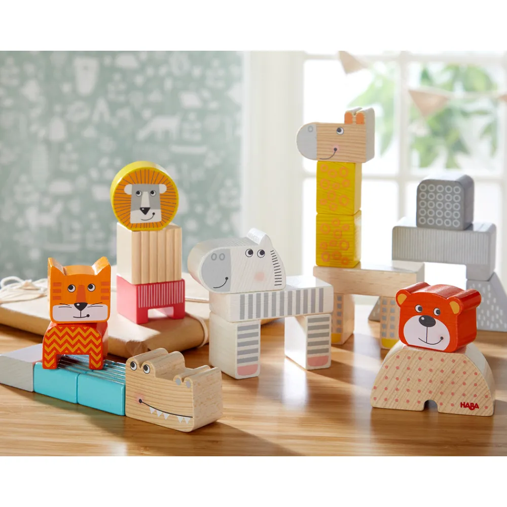 De giraf, leeuw, zebra en andere dieren staan klaar voor de grote parade en kleine bouwers kunnen hen helpen! Met de bouwstenen in verschillende kleuren en patronen kunnen de dieren telkens weer anders in elkaar worden gezet –