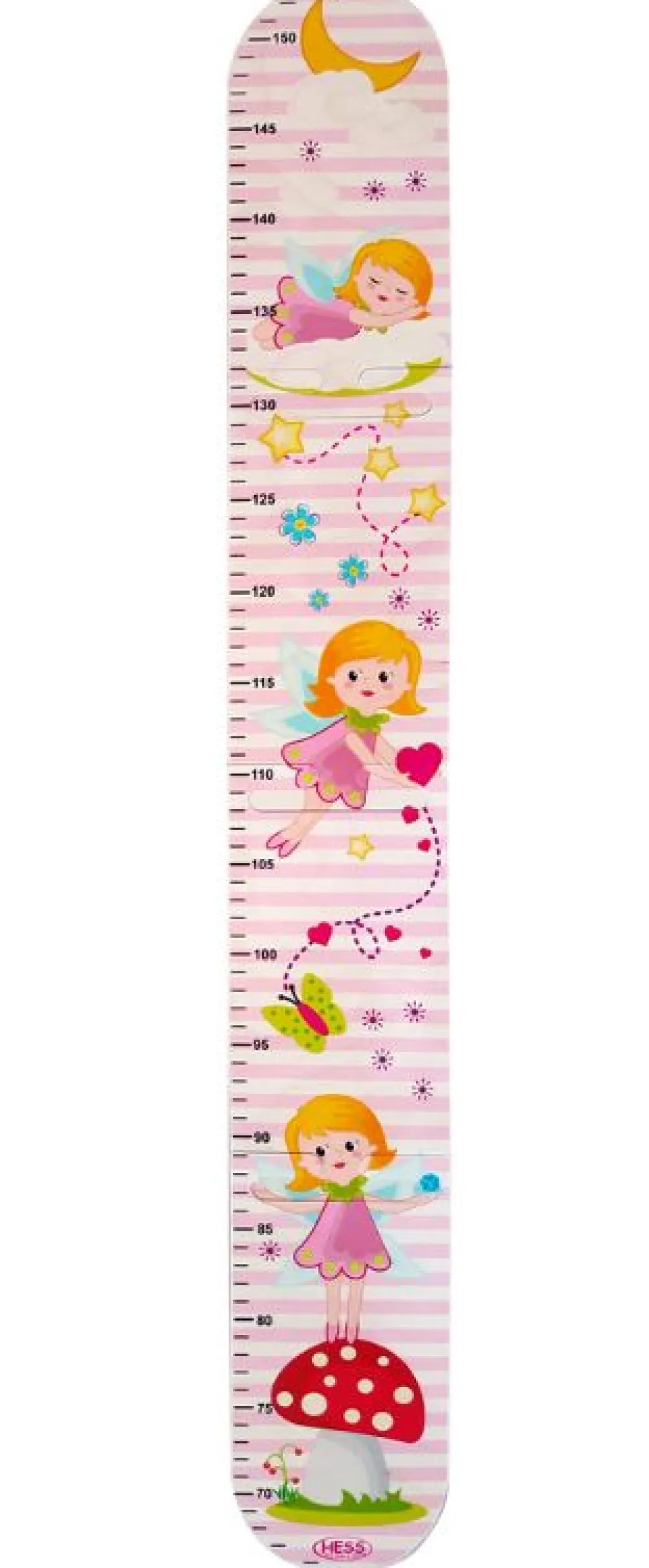 Kijken hoe groot je bent? Dan kan gemakkelijk met deze groeimeter. Op deze groeimeter staat een fee afgebeeld die op een paddenstoel staat, een dutje doet op een wolk en een hartje vangt.