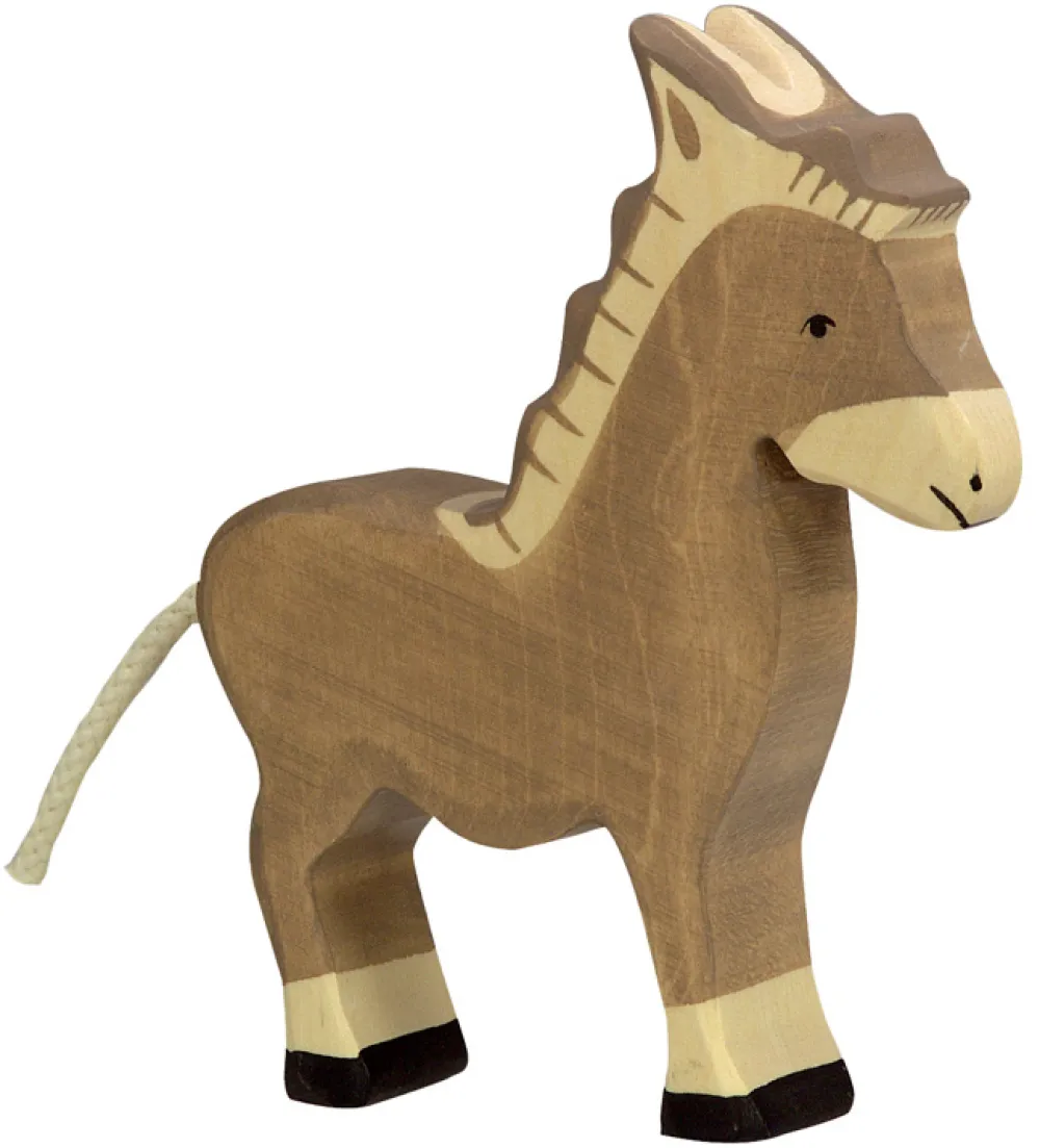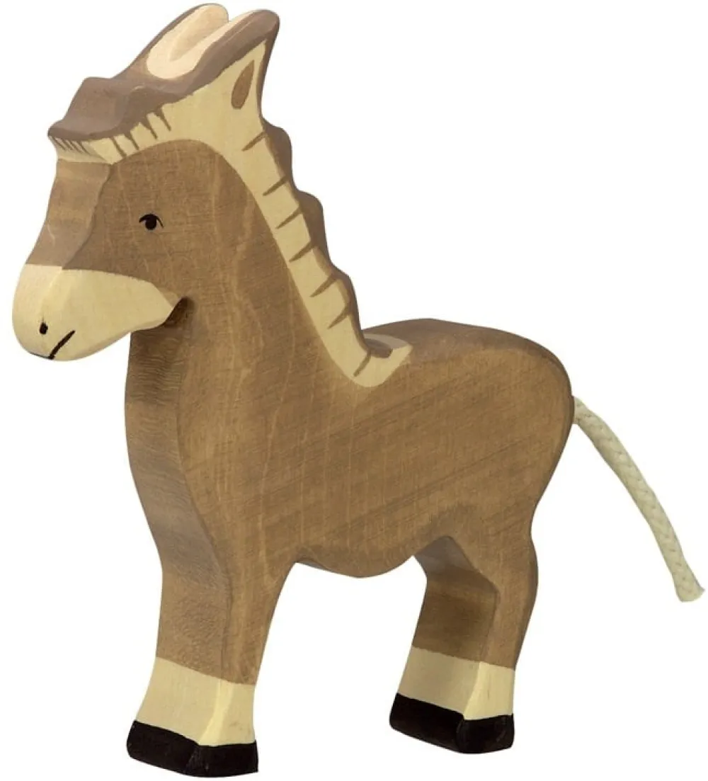 Maak je eigen boerderij met de houten dierenfiguren van Holztiger, deze ezel die rechtop staat mag daarin niet in ontbreken. Deze van hout gemaakte ezel staat rechtop en kijkt vooruit. Afmeting: 11×2.3×13 cm