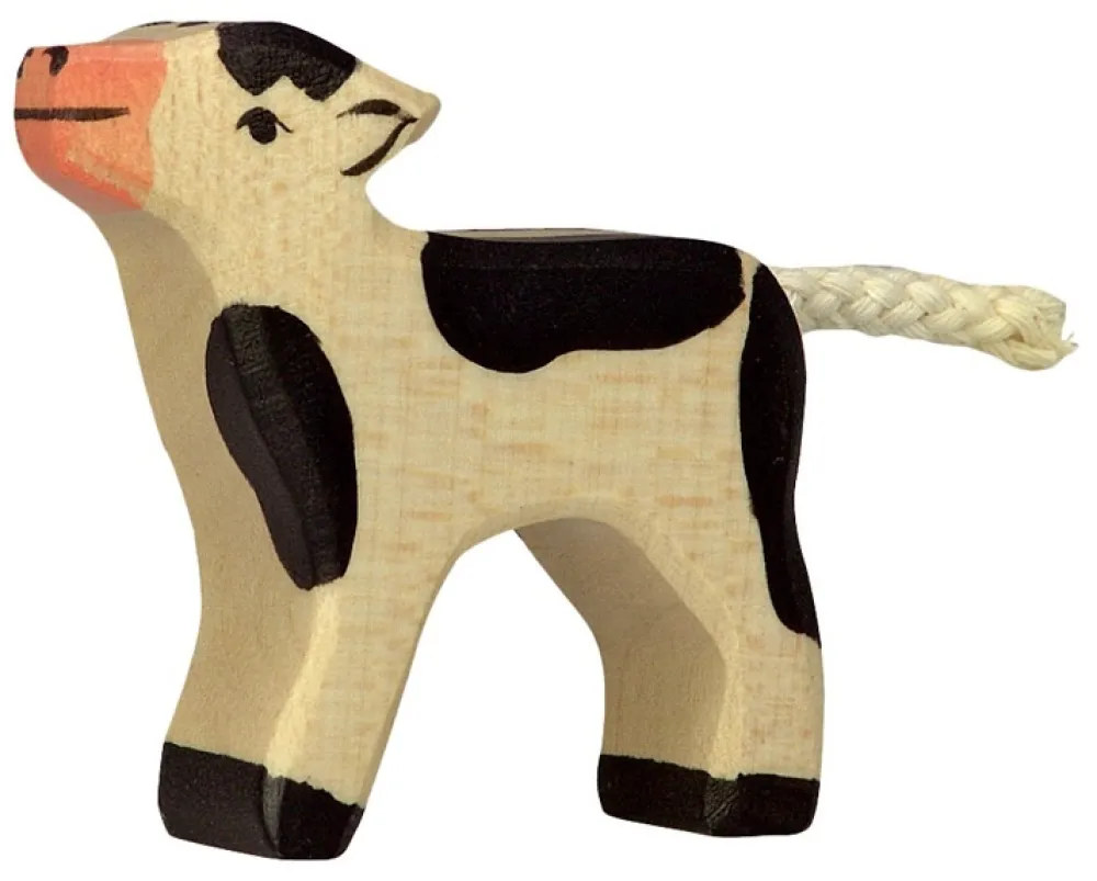 Maak je eigen boerderij met de houten dieren en figuren van Holztiger, daar mag dit kalf niet in ontbreken. Afmeting: 6×1.9×6 cm