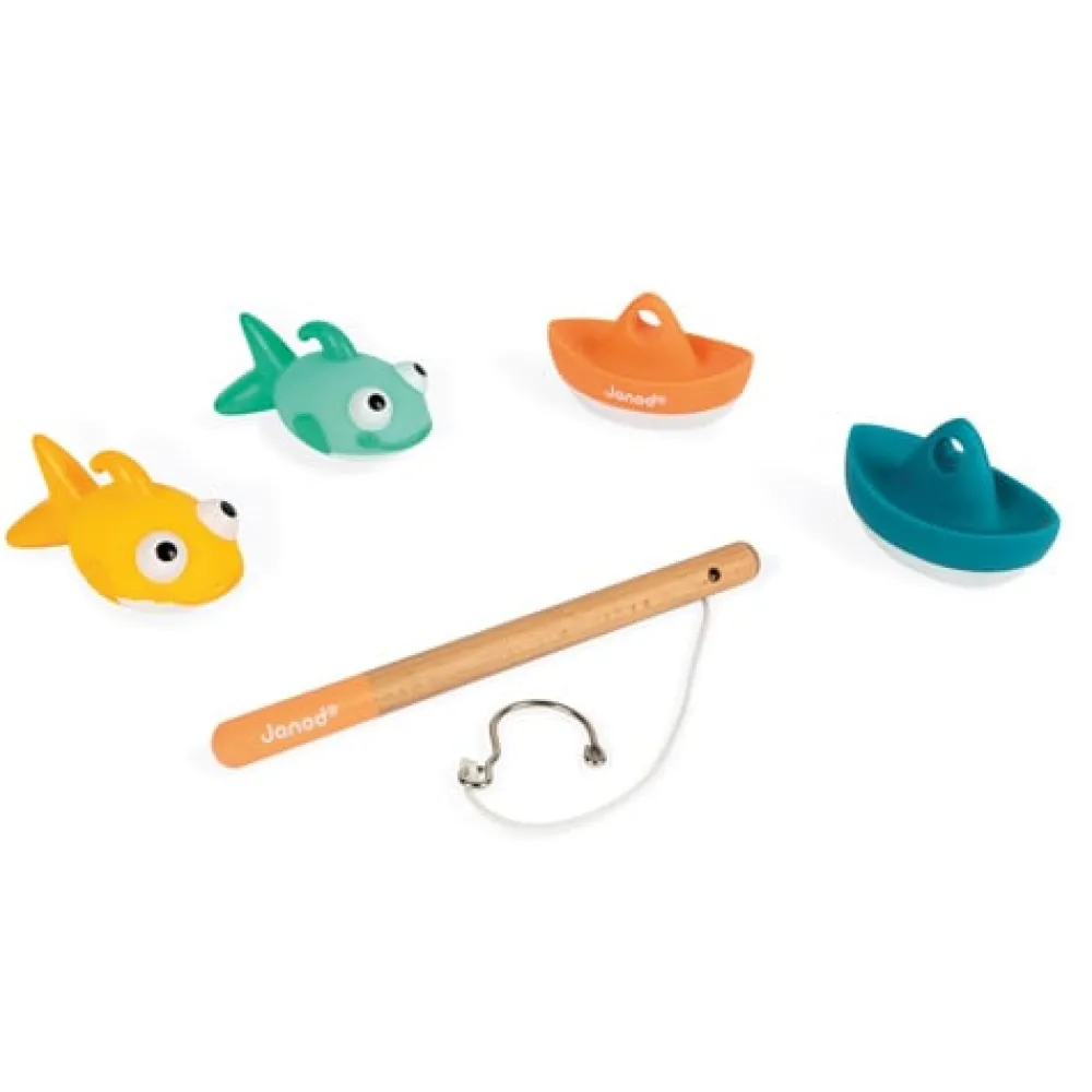 Een leuke set van Janod bestaande uit een hengel, 2 bootjes en 2 visjes om op te hengelen. Pak de boten en kleine visjes zo snel mogelijk. Ideaal om in bad de behendigheid en de concentratie te ontwikkelen.