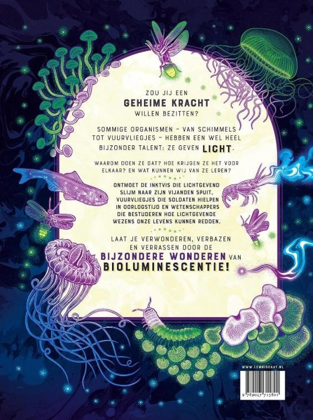 Ga mee op een magische reis door de diepzee, glimmende grotten en donkere bossen en laat je verwonderen, verbazen en verrassen door de bijzondere wonderen van bioluminescentie in dit boek waarvan de prenten licht lijken te geven.
