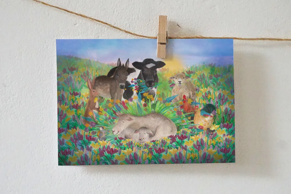 Lotte Drouen Wenskaarten^Ansichtkaart Lammetje geboren