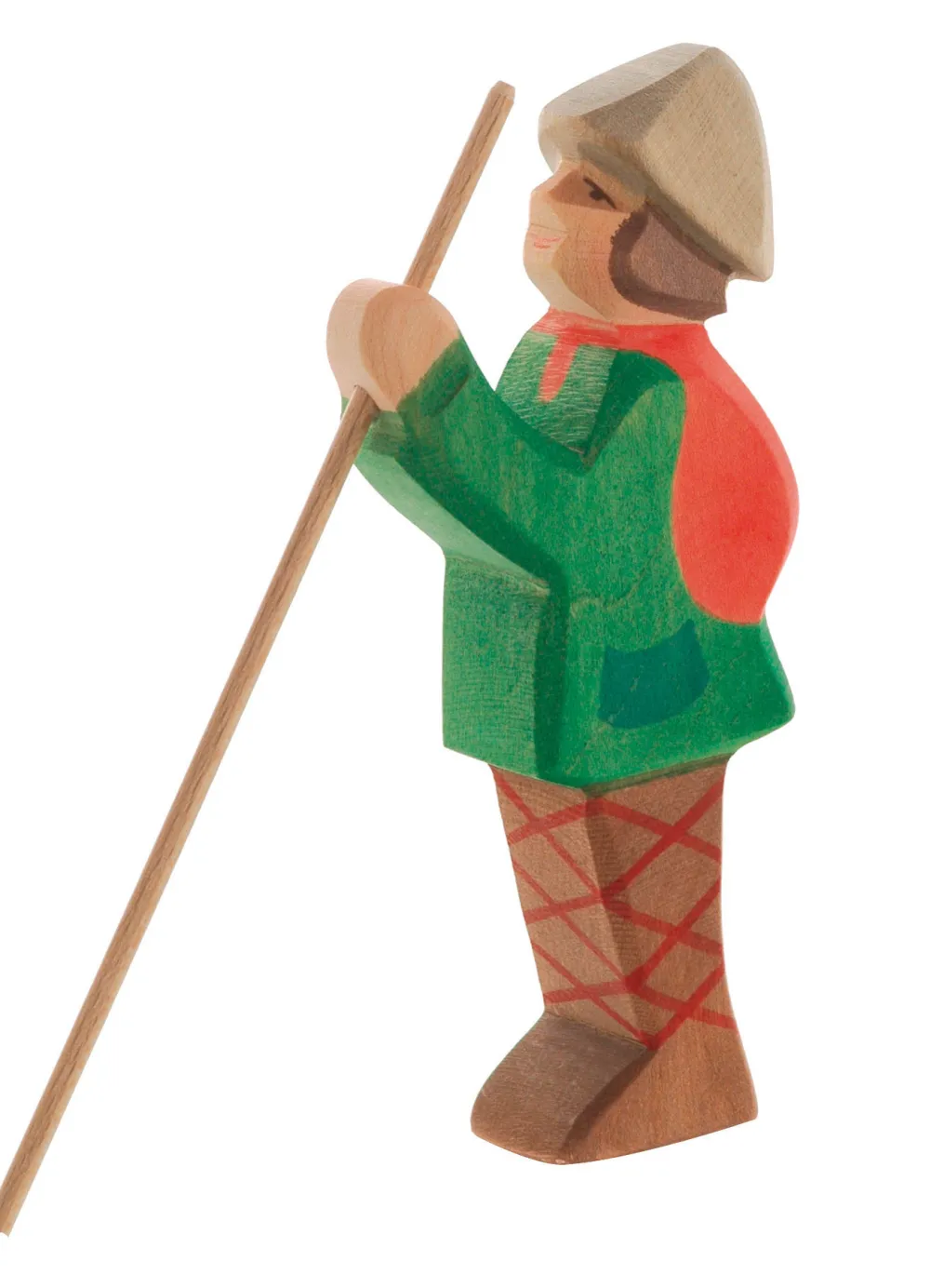 Deze herder van Ostheimer staat rechtop en heeft zijn herdersstok in de hand. De herder past natuurlijk goed bij de kerststal, maar plaats hem ook eens bij de schapen. Hoogte: 15 cm.