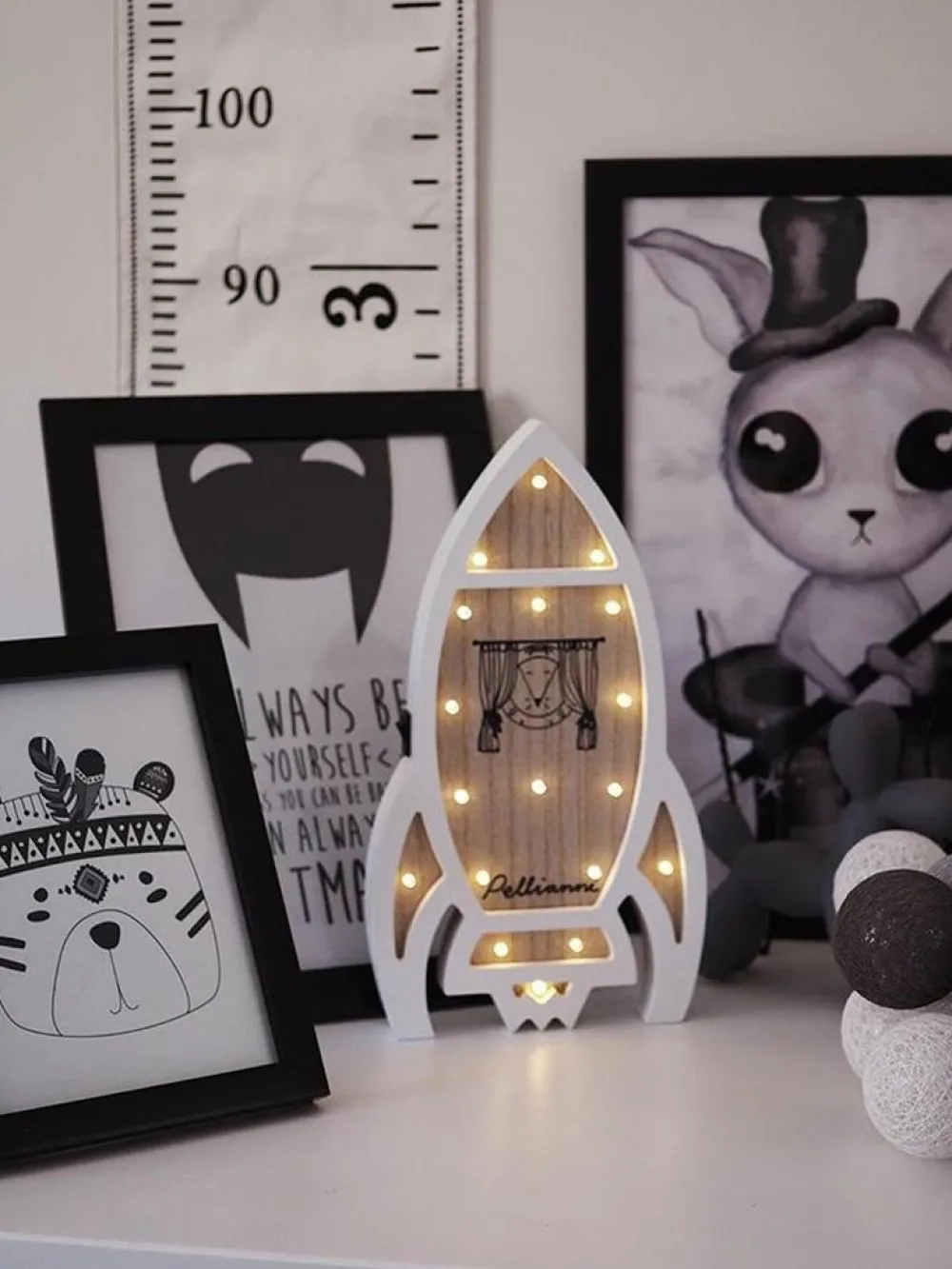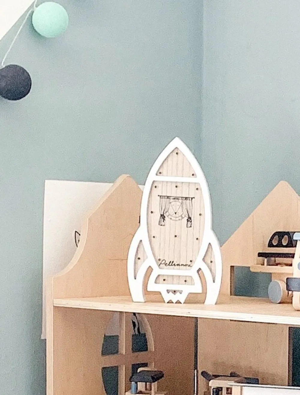 Dit lampje in de vorm van een raket van Pellianni past goed in elke kinderkamer. Het lampje is gemaakt van FSC hout waarin LED lampjes zitten. Gemakkelijk verplaatsbaar doordat het op batterijen werkt.