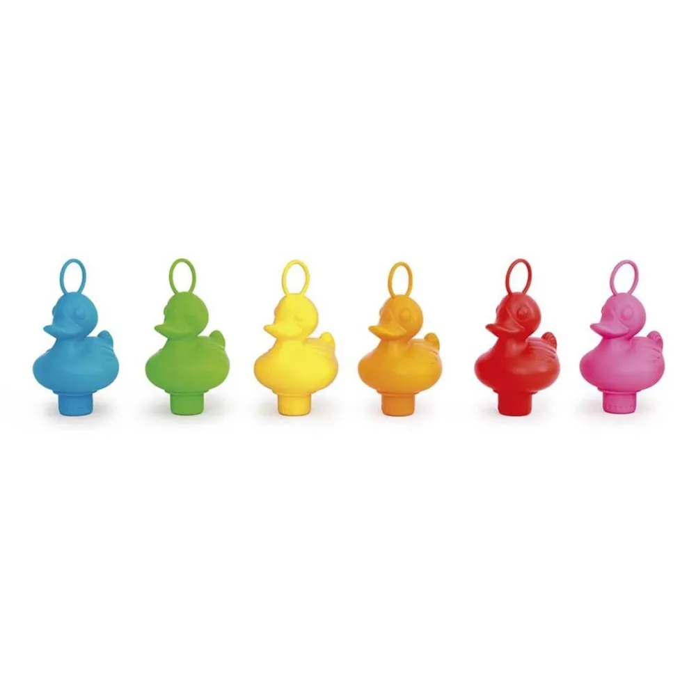De set bestaat uit 3 badeendjes in willekeurige kleuren en 1 hengel.