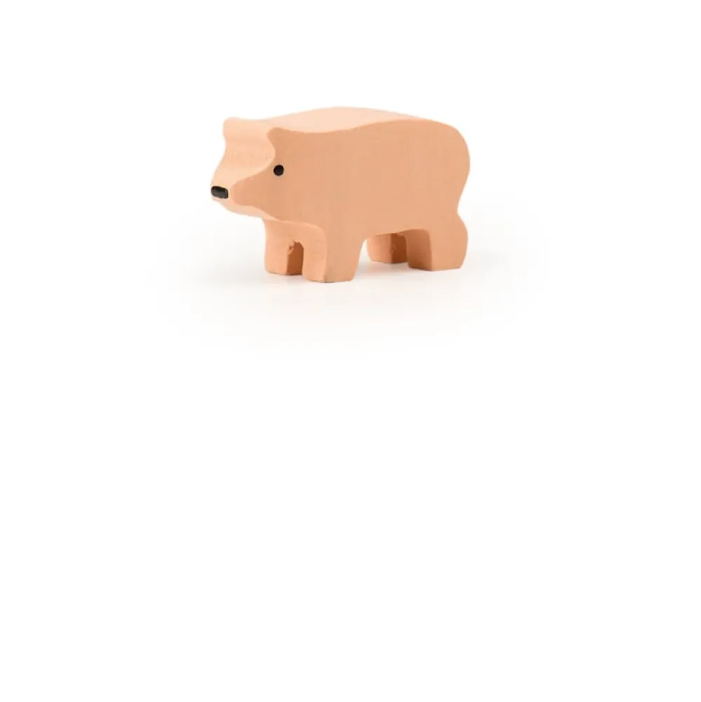 Dit roze varken van Trauffer staat rechtop en is met de hand gemaakt van lindehout in Zwitserland, de gebruikte verf is vrij van chemicaliën. Het varken is robuust genoeg om mee te spelen. Hoogte: 2.5 cm.