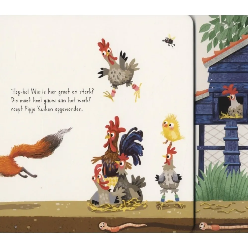 Eén voor één doen de dieren een poging hem te bevrijden. Maar in hun eentje lukt het niet. En als ze nu een lange rij maken, en allemaal tegelijk trekken, zou Mol dan eindelijk los schieten?