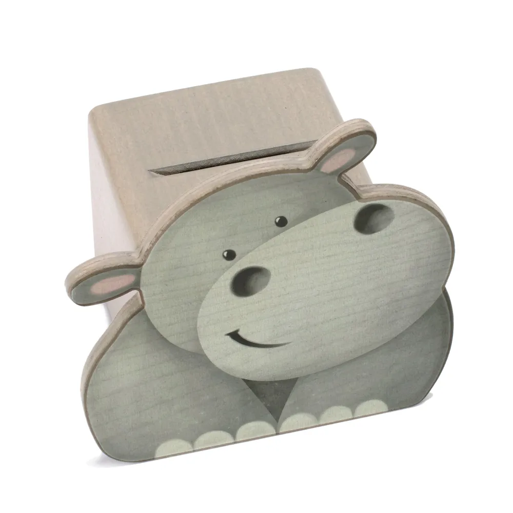 Weizenkorn Spaarpot Gezicht Nijlpaard Hout