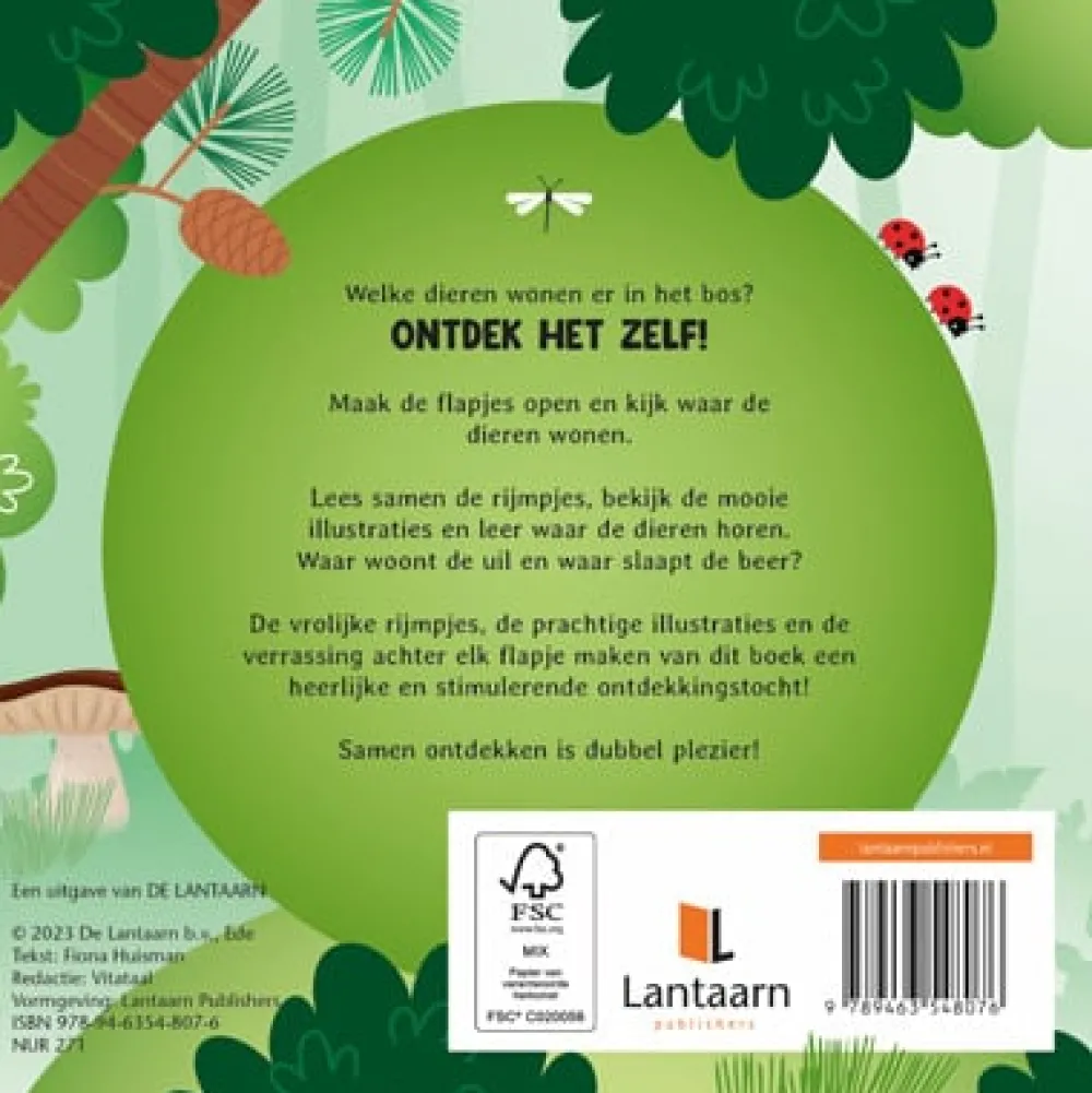 Welke dieren wonen er in het bos? Ontdek het zelf! Maak de flapjes open en kijk waar de uil woont en de beer slaapt. Stevig kartonboek met vrolijke rijmpjes om samen op ontdekkingstocht te gaan.