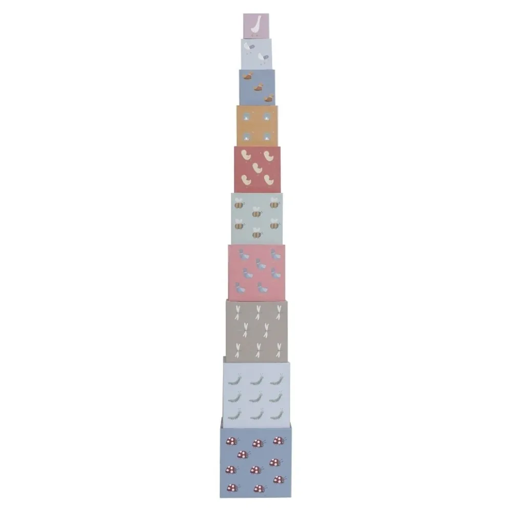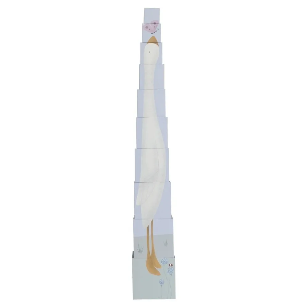 Kinderen leren spelenderwijs tot 10 te tellen met deze blokkentoren van Little Dutch. De blokken zijn geïllustreerd met de herkenbare Gans en al zijn vriendjes die rond de vijver op het platteland wonen.