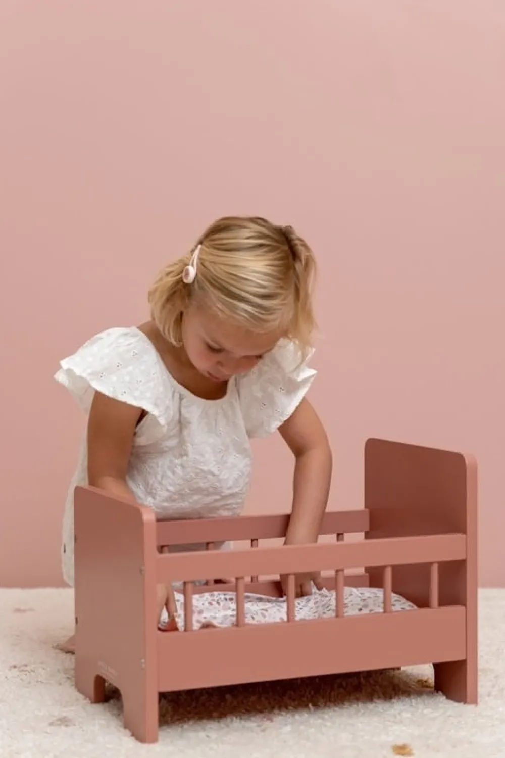 Kinderen vinden het heerlijk om hun ouders na te doen door papa of mama te spelen voor hun poppen en knuffels. Rollenspel bevordert de creativiteit en verbeelding en dit poppenbedje is perfect speelgoed om dat aan te moedigen. Het is gemaakt van stevig hout en om het extra comfortabel te maken voor de poppen wordt het geleverd met een kussen, deken en hoeslaken in het mooie Flowers & Butterflies dessin. Wordt het Anna, met bijpassend rokje van Flowers & Butterflies, Sophia of Jake die jouw kleintje zal kiezen om in dit schattige poppenbedje te slapen?