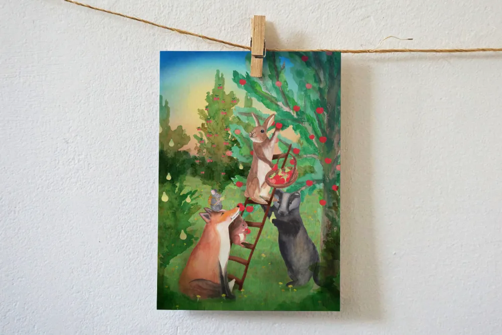 Lotte Drouen Wenskaarten^Ansichtkaart Fruit plukken