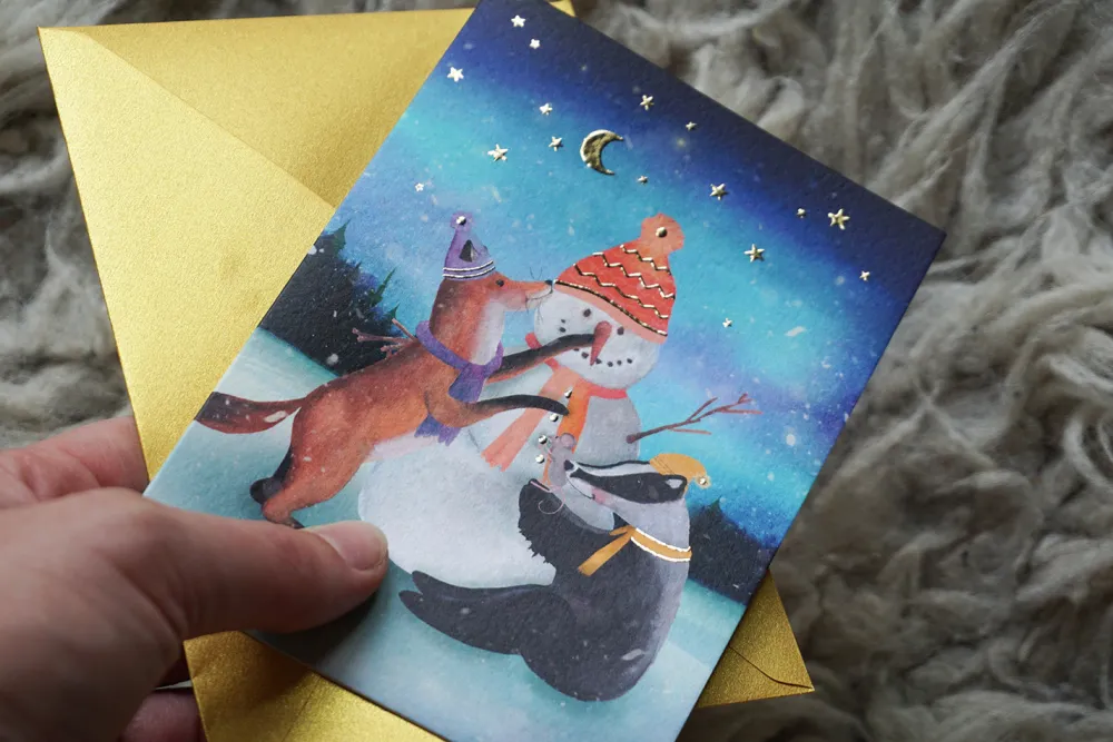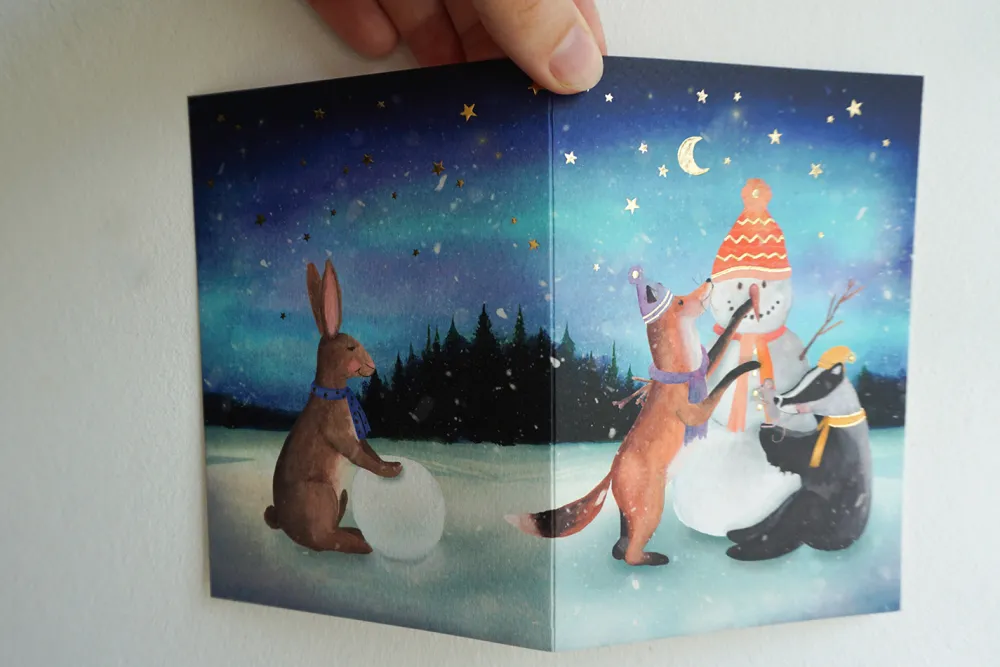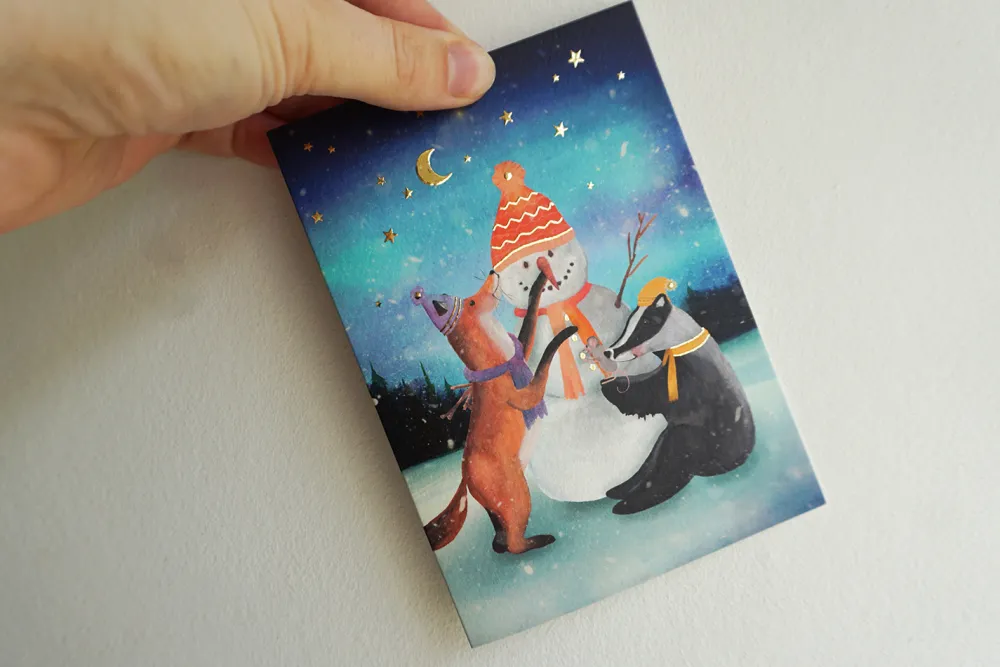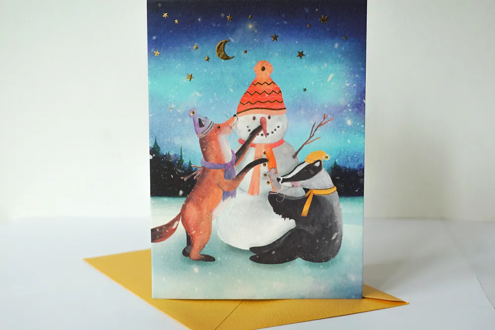 Lotte Drouen Wenskaarten^Wenskaart met Foliedruk Sneeuwpop Bouwen