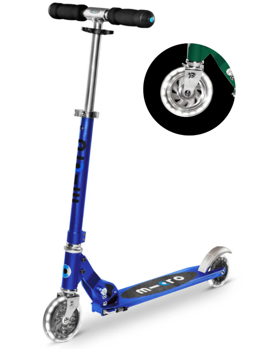 De best verkochte 2-wielige step wordt nu ook geleverd met LED-verlichting op de voor- en achterwielen. De slimme LED-technologie gebruikt inductie-energie om de kracht die kinderen creëren terwijl ze steppen. Geen batterijen. Geen gedoe.