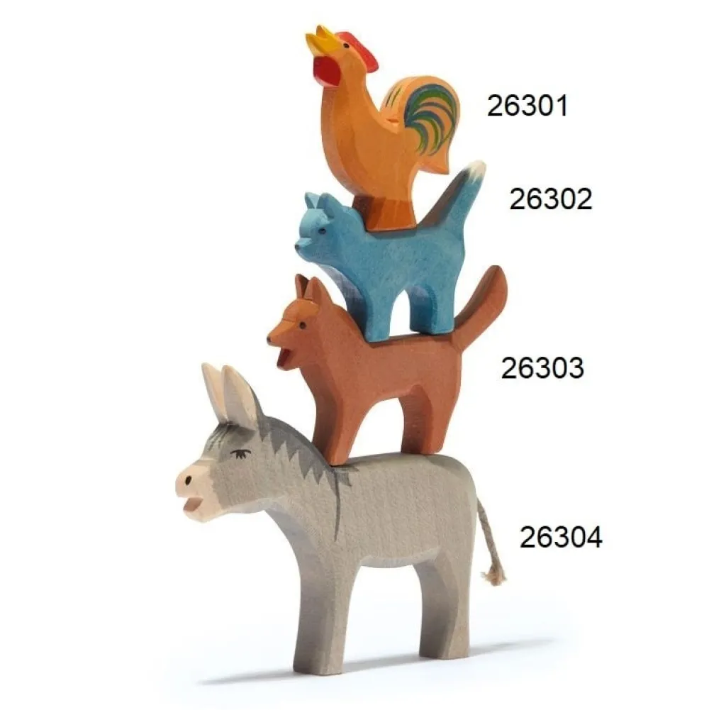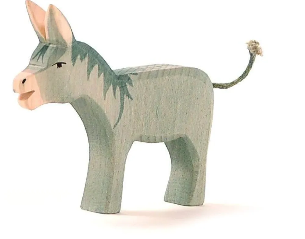 Ken je het sprookje nog van de Bremer stadsmuzikanten? Deze ezel van Ostheimer was een van de vier figuren. De ezel is met de hand van inheems geteeld hout gemaakt. Hoogte: 10cm