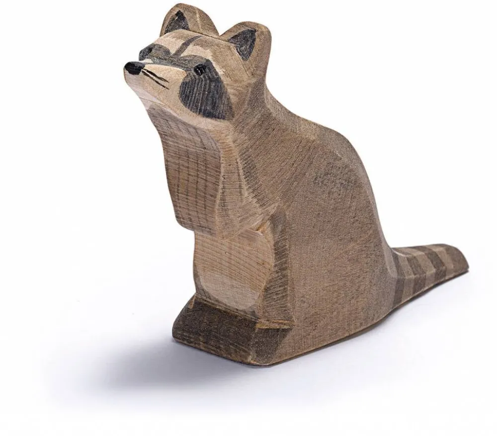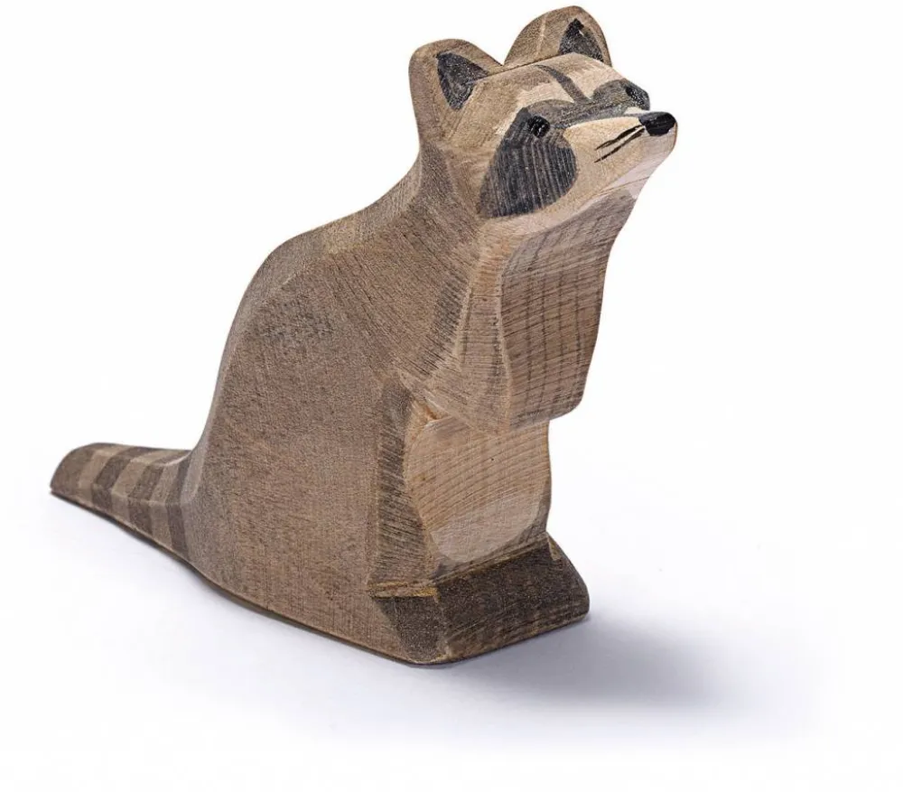 Deze wasbeer zit en heeft zijn kopje omhoog en komt uit de reeks bos- en velddieren van Ostheimer. Hoogte: 6 cm
