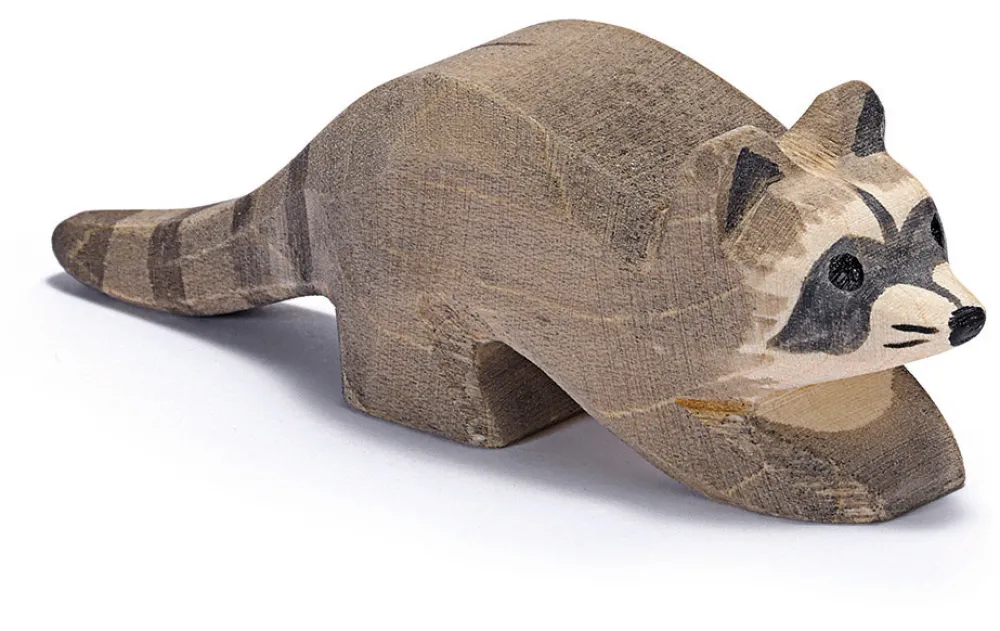 Deze kleine wasbeer kijkt recht vooruit en komt uit de reeks bos- en velddieren van Ostheimer. Hoogte: 2.5 cm