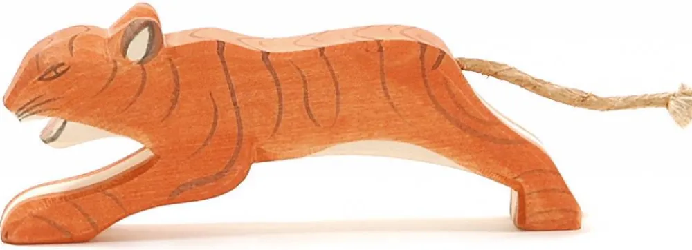Deze tijger heeft een springende houding en komt uit dereeks dierentuindieren van Ostheimer. Hoogte:6,5cm